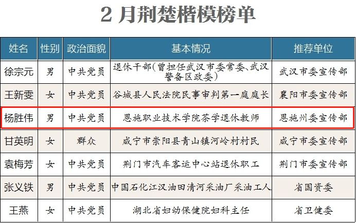 2019年荆楚楷模2月榜单发布,恩施82岁退休教师杨胜伟上榜!